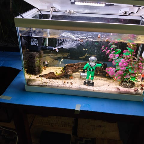 Mina guppys har förökat sig rejält och akvariet börjar bli fullt, så nu finns det några som behöver flytta till nya hem.