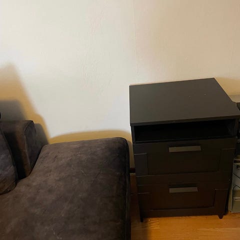 Fin, rymlig och riktigt stabil IKEA byrå med 2 lådor i svart utförande. Byrån har två utdragbara lådor med ljus insida och integrerade handtag i överkant på fronten. Passar som förvaringsmöbel i sovrum, hall eller vardagsrum för kläder, textilier eller annan förvaring.