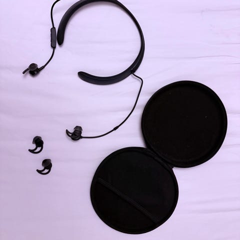 Bose SoundSport Free trådlösa in-ear hörlurar i svart med orange detaljer. Modellen är helt trådlös med två separata öronsnäckor och medföljande laddningsetui. Hörlurarna är utformade för att sitta stabilt i öronen och lämpar sig för vardagsanvändning och träning. Laddningsetuiet fungerar som förvaring och extra batteri mellan lyssningstillfällena.
