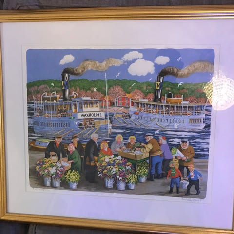 Litografi av Göran Hahne. Ca mått 48x65cm. Med ram ca 51x69cm. Finns i Hammarby sjöstad