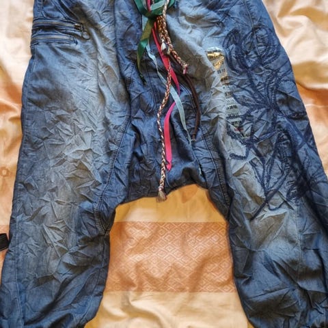 Desigual blus för dam i storlek S. Färgen är svart med flerfärgade mönster och tryck, bland annat fjärilar och grafiska former. Långärmad modell med V-ringning. Säljes för nypris.