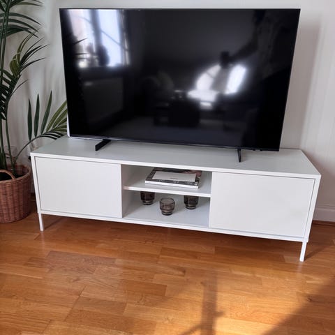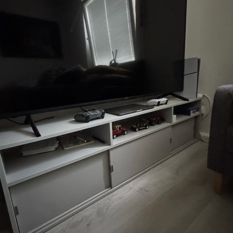 Säljer två stycken SPIKSMED tv-bänkar i ljusgrå färg. De kan användas var för sig eller sättas ihop för att skapa en större tv-bänk.