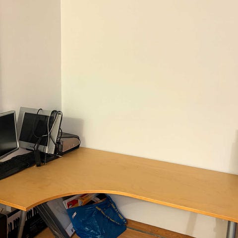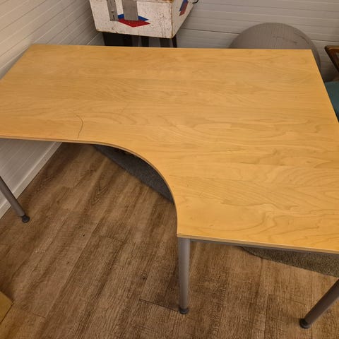 Hörnskrivbord svart med vit ställbar underrede