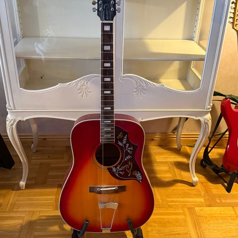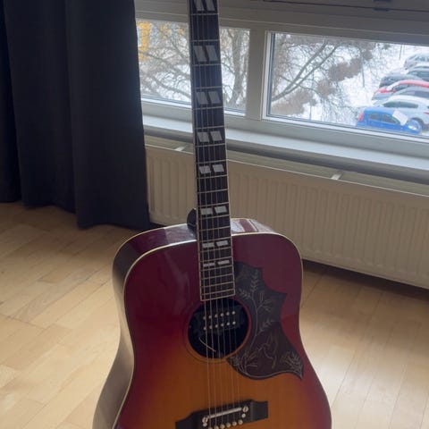 Säljer en otroligt vacker gitarr som är väl omhändertagen. Epiphone Hummingbird PRO/EC akustisk gitarr i sunburst-finish. Modellen är en dreadnought med cutaway och inbyggd elektronik för uppmickning via förstärkare eller PA-system. Hämtas utanför Uppsala eller möts upp centralt. Finns även att testas med eller utan förstärkare hos mig. Hör av er!