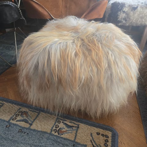 Nytillverkad mycket stor sacosäck I fårskinn Islands Muflon, har använt 9 stycken fårskinn och det tog 30 timmar att sy.