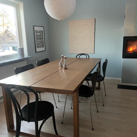 Matbord, bordsskiva i ek och bordsben från danska HAY