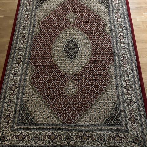 Fin matta 230 x 170 cm Mattan är marinblå med beige mönster.