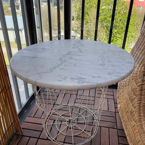 Heaven Round Table är ett sidobord formgivet av Jean-Marie Massaud för italienska EMU. Bordet är tillverkat av vävda stänger i stål och skivan av tempererat glas. Passar på altanen, balkongen eller varför inte inomhus. Underrede vitlackerat och skivan rökfärgad.