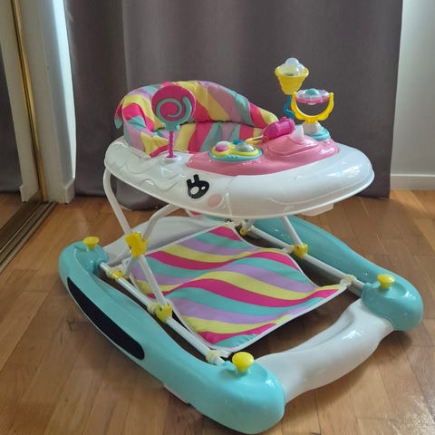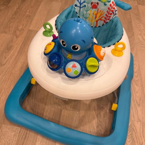 Säljer en gåstol från Babydan med olika funktioner, blinkande ljus, musik, leksaker att dra och putta på. Varit mycket uppskattad av vårt barn.