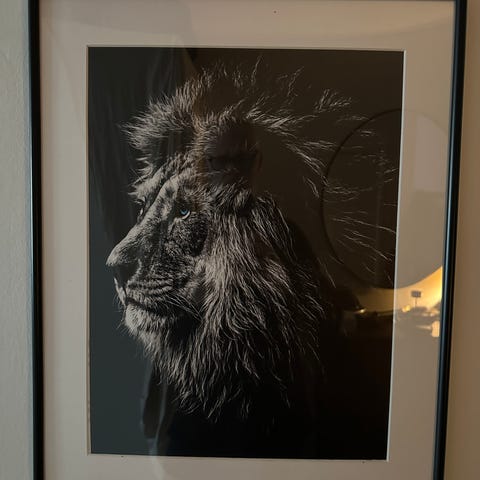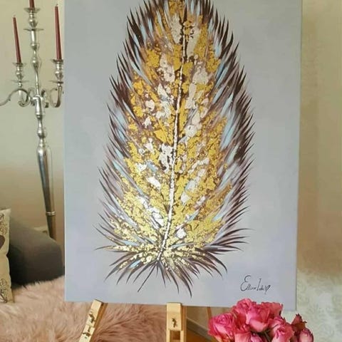 Tavla med motiv av en nattfjäril/svärmarei svart och guld.