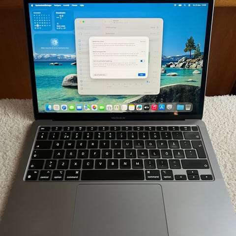Nästintill nyskick. Inga repor eller märken då jag haft ett skin på ovan och undersida. Se batteristatus enligt bild. 8Gb RAMminne 256Gb vanligt minne. Kan skicka mot att köparen betalar frakt. Kvitto finns ej då jag köpte via blocket under 2022.