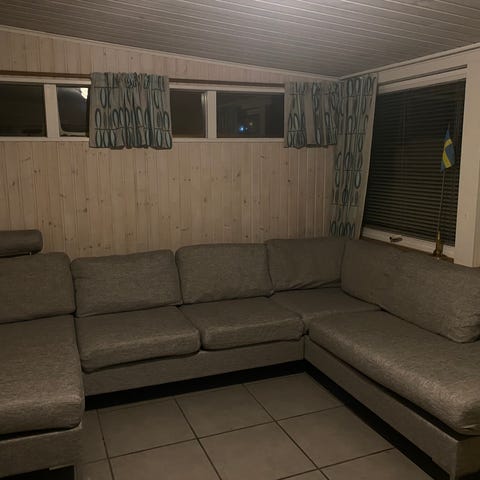 Ljusgrå hörnsoffa från Mio modell Nevada 3-sits med divan. Nypris ca 7500kr