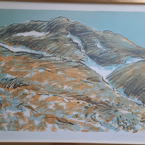 Detta är en färglitografi med fjällmotiv av konstnären Batte Sahlin.