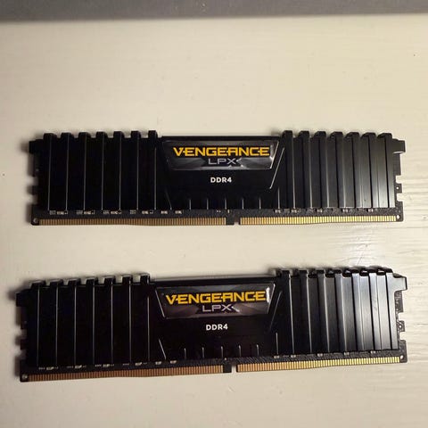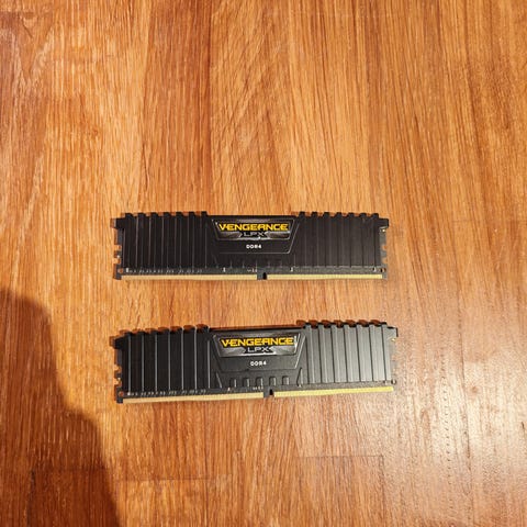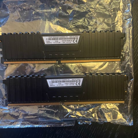 Säljer ett kit på 32gb (2x16gb) corsair vengeance 2666mhz ram, fungerar som de ska.