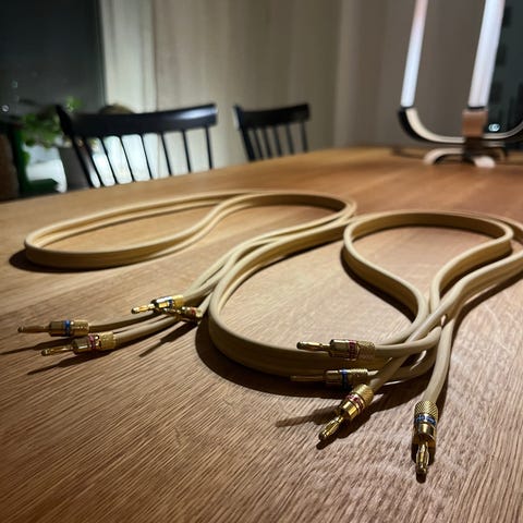 Detta är en ren silverkabel som inte låter vasst el. hårt på nåt sätt. Bästa kabeln jag haft!