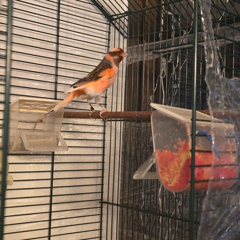 En gloster hane född november 2025 sjunger fint.
