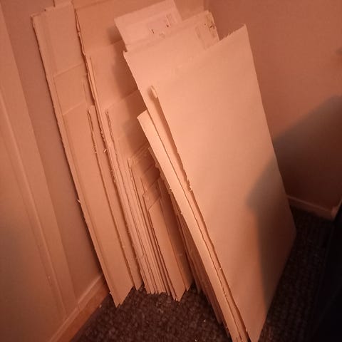 Canvas målardukar med vit duk uppspänd på träram/kilram. Den stora 60x50cm (oöppnad) den lilla 40x30cm (blyertsfläck) Passar för målning, teckning eller annan bildkonst. Baksidan stabil träram med tvärslå på den större duken för extra stadga. Nypris båda ca.500-600.-