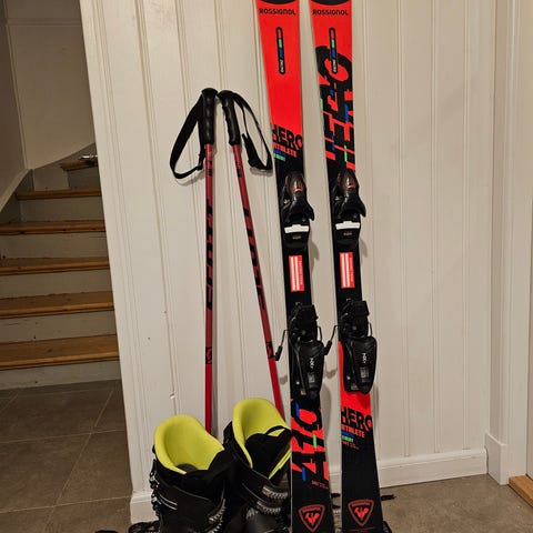 Head Free Team alpinskidor med pjäxor och stavar röd blå
