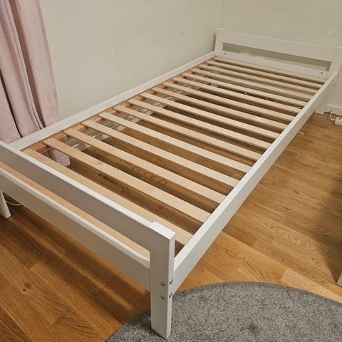 OBS! Skada finns på en av reglarna i träramen i resårbotten men då botten vilar inne i sängramen påverkas inte funktionen.