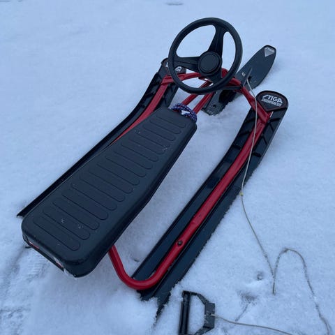 Stiga snowracer barn pulka i svart och gult. Klassisk rattstyrd kälke med tre medar och broms. Sits i plast med räfflad yta för bättre grepp. Utrustad med styrsystem och draganordning framtill. Avsedd för barn för åkning i snöbackar.