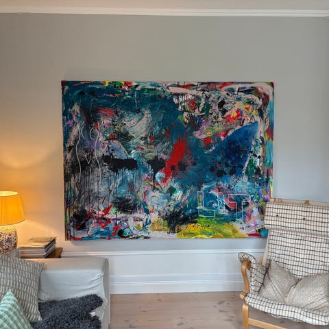 Okänd konstnär abstrakt målning figurativ motiv gulvit