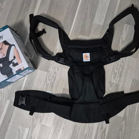 Ergobaby bärsele i svart färg. Modellen är avsedd för att bära barn nära kroppen med stöd över axlar och runt midja. Selen har justerbara remmar och spännen för att kunna anpassas efter bärare och barn. Passar för vardagsanvändning, promenader och andra aktiviteter där man vill ha händerna fria samtidigt som barnet sitter tryggt och nära.