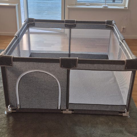 Enkel att sätta upp och packa ner och tar väldigt lite plats när ihopvikt (se bilder). Vi tog med den i bilen på resor och använde som en spjälsäng för våra små.