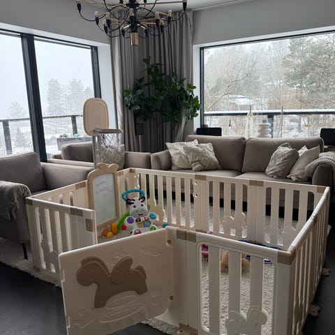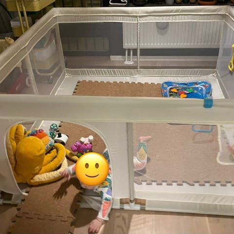 Var perfekt för att ha tvillingar i upp till ca.8 månader (blir lite för liten för två när de börjar ställa upp sig och ramlar, men fungerar säkert längre för ett barn!).
