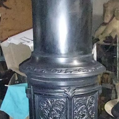 Blästrad och svärtad med ny lera. Nytt spjäll samt asklåda.