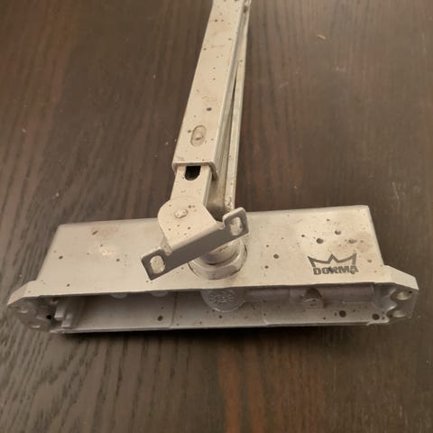 Ny aldrig monterad dörrstängare komplett med monteringsskruvar, justeringsnyckel och bruksanvisning.