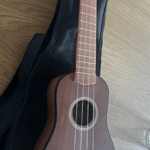Svart ukulele fabrikat Reno nyskick med fodral.