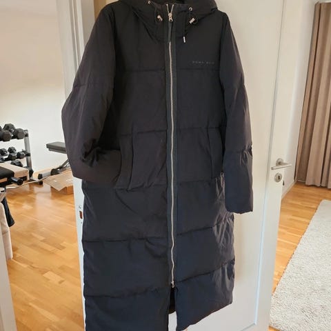 KappAhl jacka för dam i storlek L. Jackan är svart och tillverkad i polyester, med yttertyg och foder i polyester. Fyllningen består av en blandning av dun och fjädrar enligt tvättrådsetiketten. Modellen är en längre, vadderad ytterjacka med huva. Passar som varm ytterjacka under kallare väder. Mycket bra skick.
