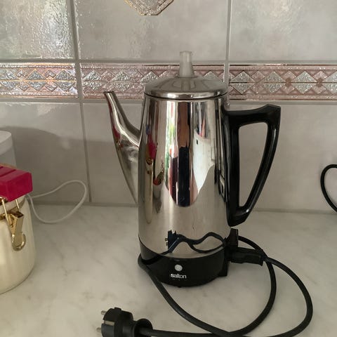 LaCa Fetiere modell 22.2 Alice vattenkokare med en kapacitet på 1,7 liter. Vattenkokaren är tillverkad i rostfritt stål med svart handtag och separat 360° roterbar bas med elkabel. Passar för uppkokning av vatten till te, kaffe och matlagning i hemmet eller på kontor. Drivs med 220–240 V, 50–60 Hz enligt märkningen på undersidan.