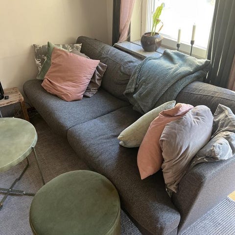Mörkblå soffa från IKEA bortskänkes. I okej skick och fullt funktionell.