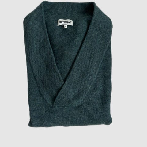 Soft Goat tröja i kashmir för dam i storlek XL. Modellen har lång ärm och V-ringning. Färgen är blå och materialet är kashmir, vilket ger en mjuk och följsam känsla. Passar som vardagströja eller att bära över skjorta eller topp vid svalare väder.