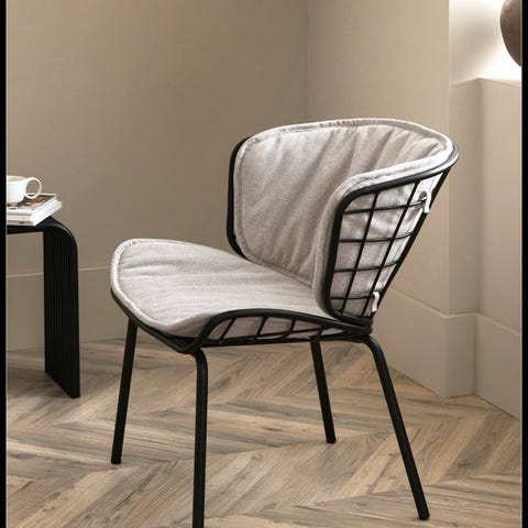 En loungestol i metall, det är någon form av designstol men vet inte namnet.