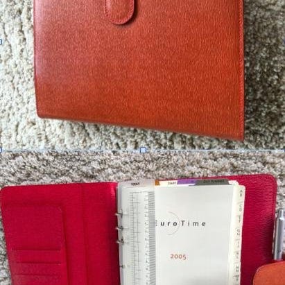 Stor Filofax, modell Malden i A5. Mjukt läder, svårt att säga om den är mer babyblå än turkos. Har ett litet mörkare märke på framsidan, annars i toppskick. Kan postas.