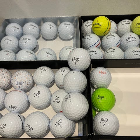 Min son säljer ett sortiment av golfbollar från Titleist PRO v1x. Perfekt för golfaren som vill ha det bästa på banan. Tusch i mkt liten utsträckning förekommer på enstaka bollar. De flesta av bollarna upplevs som helt nya, se bilderna. De är bollarna på bilderna som säljs. Årgången varierar. Bollarna är handtvättade.