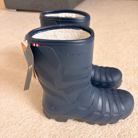 Det är inte Viking utan märket är Fashion men fanns inte som valmöjlighet. Skorna är svarta med kraftig sula och grovt mönster undertill. Ovandelen har flera remmar/snörning och vadderad krage runt ankeln för ökad komfort. Passar som vardags- eller uteskor för barn/kvinnor i storlek 37.