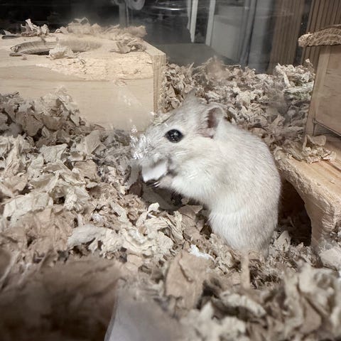 Du får med mat, bur, hjul, två hus i trä en som hänger och en som står, en gren, en liten trä bro, en matskål, en vattenflaska och en transport bur💗 allt för 950 samanlagt med gerbilerna💗