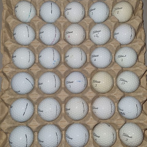 Min son säljer ett sortiment av golfbollar från Titleist. Perfekt för golfaren som vill ha det bästa på banan. Tusch i mkt liten utsträckning förekommer på enstaka bollar. De flesta av bollarna upplevs som helt nya, se bilderna. De är bollarna på bilderna som säljs. Årgången varierar. Bollarna är handtvättade.