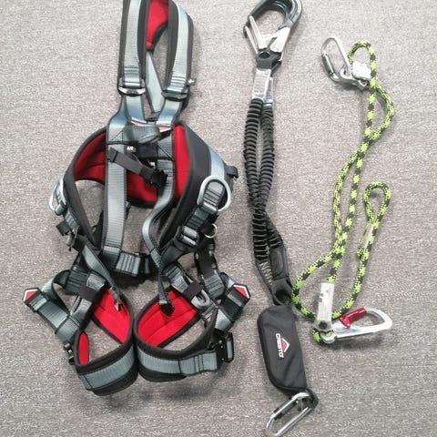 Säkerhetssele med fallskyddsline röd och grön