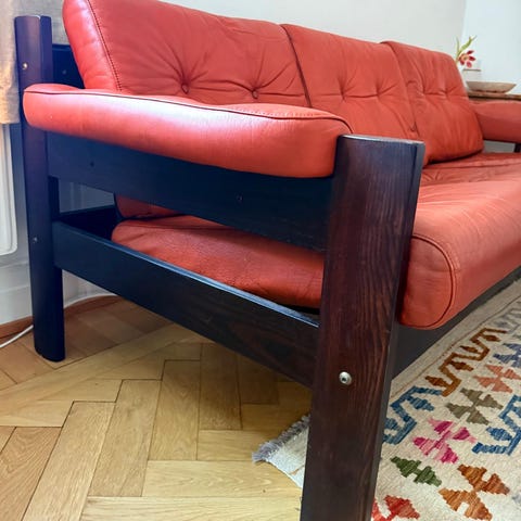 Vid bildgoogling skulle det kunna vara en Hans Olsen soffa, Danmark, 1960-talet.