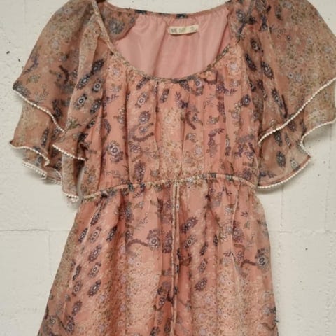 Danity klänning för dam i storlek L. Klänningen är rosa med blommigt mönster och har spetsdetaljer upptill. Axelbanden är smala och modellen är ärmlös. Passar till vardag eller fest beroende på hur den kombineras med andra plagg och accessoarer.