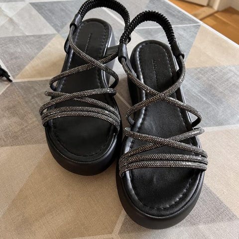 Sommarskor med öppen tå och kilklack. Storlek 40. Märke DS, shoes by din sko.