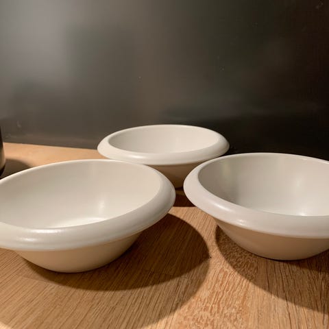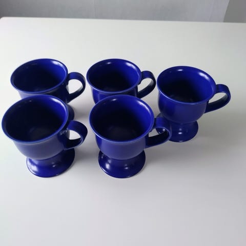 Fat 14 cm i diameter, kopp 7,5 cm i diameter och ca 6,5 cm i höjd. Inga skador.