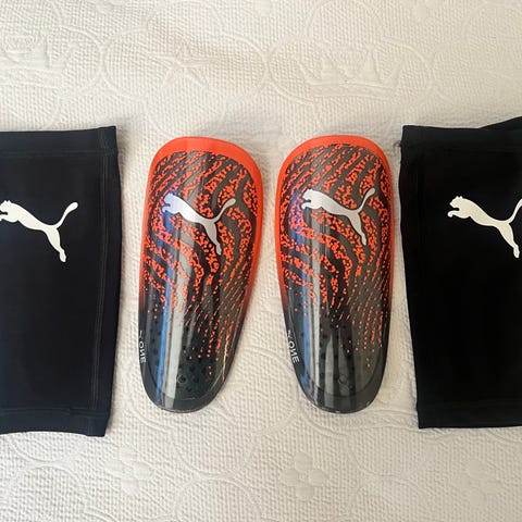 Puma benskydd i svart färg. Benskydden har justerbara remmar för att sitta stadigt runt benet. Passar för fotboll eller annan sport där benskydd behövs. Levereras tillsammans med originalförpackning som visar storlek 7.
