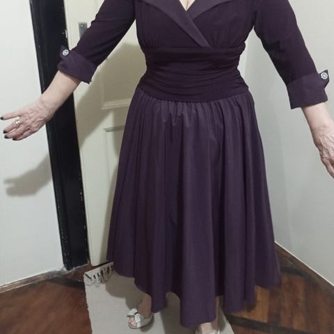 Klänningen sitter mycket fint på kroppen, är bekväm och framhäver figuren på ett vackert sätt. Perfekt för fest, bröllop eller andra eleganta tillfällen.