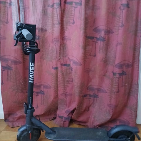 Har haft elsparkcykeln ett antal år, och använt den endast en gång. Finns med en väska, laddare, vajer och lås. 20km/tim är hastigheten och går att ställa in på 5 och 10km/tim.