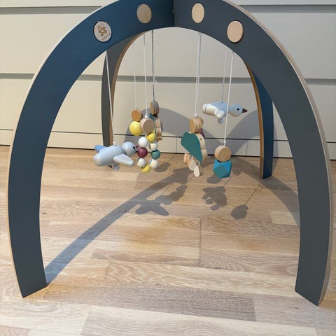 Lekmatta / bebismatta rund i rosa ton med fransar runt kanten. Ena sidan har diskreta prickar, den andra är enfärgad. Mattan är vadderad för mjukare underlag vid lek eller vila. Märkt med Oeko-Tex Standard 100. Passar i barnrum, lekhörna eller under babygym.